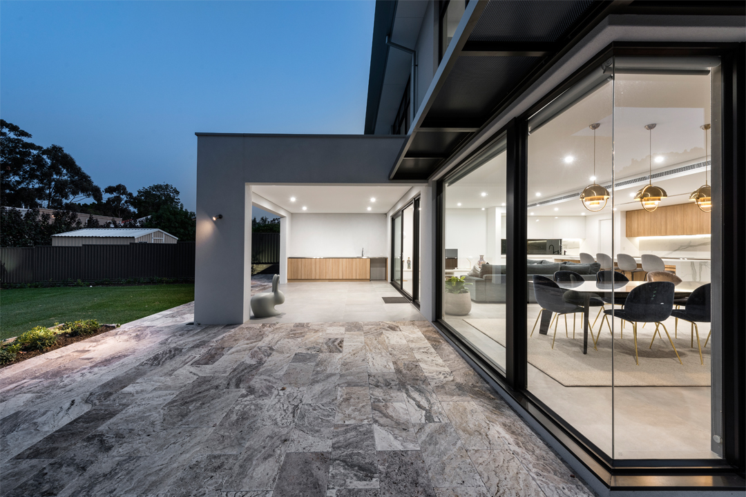 As with all Devrite Homes of Distinction projects, the double-brick home was designed with energy efficiency in mind. Suspended concrete slabs with cavity insulation combine with cross-flow ventilation to ensure the house maintains a comfortable temperature throughout the year, while the gas hot-water system, tinted glazing, low-flow tapware and LED lighting ensure it’s also highly economical. The grandparents’ wing comes complete with a powder room and an outdoor relaxation area, as well as a massive bedroom that includes a separate walk-in wardrobe and a well-appointed en suite. This allows the elder generation to live independently within their own space.