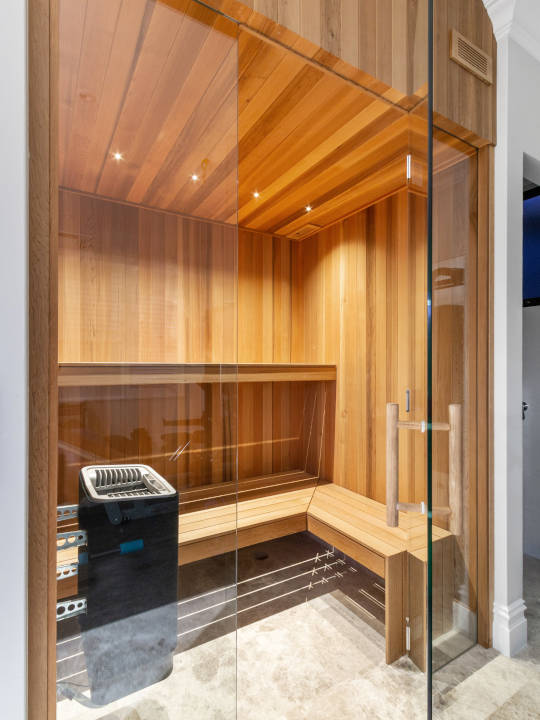 A gym has also been incorporated into the build with its own separate shower, but the feature that captures attention here is the custom-made sauna. All materials arrived raw and were handcrafted with meticulous care onsite by Elaborate Design Homes.