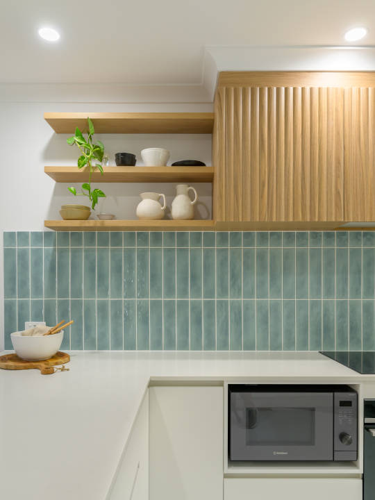 Constructed by Gia’s Renovations, this intelligently designed space strikes a perfect balance between installing unique features and prioritising functionality. The project sets itself apart with the use of the demi-round profile, enhancing the space’s impact while maintaining subtlety. This gentle curvature adds softness and visual interest, creating a distinctive look that remains timeless, feels intentional and avoids overwhelming the space.