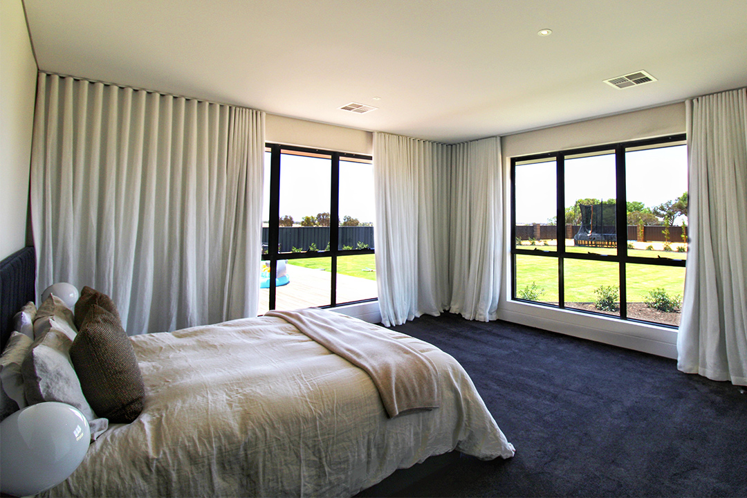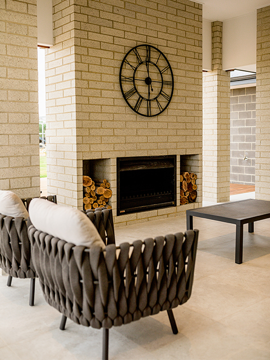 The façade is composed of a contrasting mix of textures – a stunning stone entranceway, feature brickwork and timber cladding overlook the rolling paddocks, representing the town’s livelihood and providing a gorgeous view year-round. With a location on the outskirts of town and its large size, the property is perfect for a country family home, satisfying the homeowners’ desires. This is evident in the open living area, the spacious bedrooms and ample wardrobes.