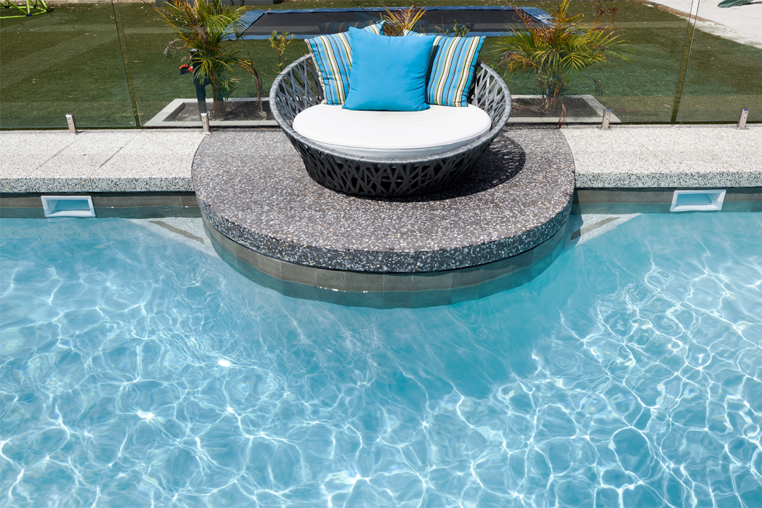 Designed by the clients, who had a vision of what they wanted, the pool was developed with the help of The Concrete Pool Company. As a result, the pool capitalised on the large property and the colours and materials used integrated well from the home.
